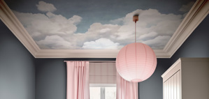- Punti luce e lampade: Negli ambienti meno illuminati, l’illuminazione artificiale deve essere progettata per mettere in evidenza i dettagli della carta da parati. Le lampade a sospensione, i faretti o le applique a parete sono delle soluzioni ideali per giocare con le luci e le ombre, fanno risaltare i motivi e creano delle atmosfere suggestive. È importante scegliere le lampadine con la giusta temperatura di colore per non alterare troppo le tonalità originali della carta.